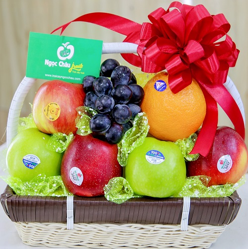 Giỏ hoa quả được cửa hàng hoa quả nhập khẩu Ngọc Châu thiết kế và đóng gói bằng các loại hoa quả tươi ngon, nhập khẩu từ các nước có nền nông nghiệp phát triển nhất trên thế giới như táo Ambrosia Canada, nho đen Úc,.., kết hợp với những phụ kiện đóng gói đi kèm như dây Zuy băng, nơ,.. Với giỏ hoa quả được đóng gói bằng các loại quả chất lượng và trang trí đẹp, vì vậy đây là một trong những giỏ hoa quả nhập khẩu được nhiều người lựa chọn làm quà tặng, quà biếu.